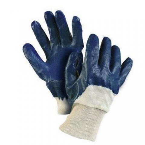 Povrstvené pracovní rukavice z bavlny s pružným nápletem na zápěstí. Vrstva nitrilu pokrývá dlaň a prsty.Bavlněné rukavice CXS polomáčené v nitrilu, modré/bílé