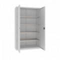 Skříně pro uložení chemických látek ve vlastním obalu. Uložené kapaliny stojí na roštu a tím nezmenšují záchytný objem polic. Skříň obsahuje 4 záchytné police s roštem o záchytném objemu 19 l na polici a spodní záchytnou vanu bez roštu o objemu 20 l. Dvoubodové uzamykání cylindrickým zámkem na klíč. Vyztužené dveře s větracími otvory uložené na vnitřních čepech lze otevřít do úhlu 110°.Skříně na uskladnění kapalin, 1950 x 950 x 500 mm