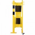 Výsuvné ocelové zábrany na kolečkách a kulatém sloupku. Dvoubarevné pruhy pro lepší viditelnost. Vhodné pouze pro použití v interiéru. Snadná manipulace, skladování a používání díky kolečkům s brzdou.Výsuvné kovové zábrany na kolečkách Dancop, kulatý sloupek