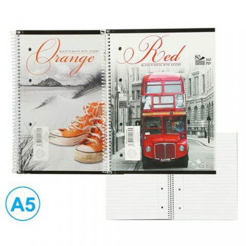 College blok z bezdřevého papíru, spirála na delší straně, čtyři otvory pro vložení do karis bloku, podlepený šedou lepenkou.Bloky COLLEGE A4 linka