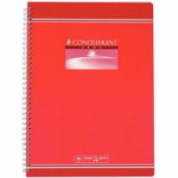 Odolná vazba se dvěma drátky, která umožňuje úplné otevření bloku pro maximální flexibilitu a pohodlí při používání. Malý čtvercový řádek o straně 5 mm má záhlaví pro zobrazení názvu a data, aby bylo možné snadno identifikovat obsah, a také levý okraj pro poznámky. Aby pomohl chránit životní prostředí, navrhl Conquérant sešit, který má částečně recyklovaný obal a je dostatečně silný, aby vydržel celý školní rok.Bloky spirála, čtvereček, A4/A5