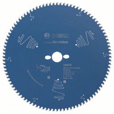 Pro čisté řezy do neželezných kovů, např. hliníku. Hodí se také pro řezání plastů a epoxidu, surových dřevotřískových desek, akustických desek, lehkých stavebních desek, abrazivních desek s jednostrannou nebo oboustrannou povrchovou vrstvou a dále vláknitých materiálů, jako jsou MDF nebo OSB desky. Zuby Microteq pro dlouhou životnost. Použitím univerzálního řezného oleje 2 607 001 409 se několikanásobně prodlužuje životnost při řezání kovu, např. hliníku balení: 1 x BAL, 1ks v BAL o otvoru hřídele: 30 mm oříznutí: 3; 4 úhel hřbetu ° w2: 15 úhel čela ° w1: -5 šířka řezu: 2,6; 2,8 mm o: 210; 216; 250; 254; 260; 300; 305; 315 mm tloušťka: 1,8; 2; 2,2 mm tvar zubů: HLTCG počet zubů: 54; 64; 80; 96 max. rychlost: 6000; 6200; 6300; 7300; 7500; 7600; 8800; 9000 ot/minBosch - Pilové kotouče Expert for Aluminium pro kapovací pily, pokosové pily a pokosové pily se zákluzem