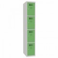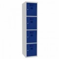 Svařované šatní skříně s boxy v několika barevných variantách, vhodné pro odkládání osobních věcí zaměstnanců na pracovištích, v převlékárnách nebo sportovních klubech. Odlehčená konstrukce z ocelového plechu tloušťky 0,5 mm s výztuhami zajišťuje dobrou stabilitu. Účinné odvádění vlhkosti z oděvů větracími otvory na dveřích. Dvířka boxů jsou zavěšená na vnitřních pantech. Uzamykání každého boxu cylindrickým zámkem, který je možné vyměnit za otočný uzávěr. Možnost umístění štítku se jménem v horní části dveří.Svařované šatní skříně Oskar, 4 boxy, cylindrický zámek