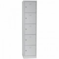 Svařované šatní skříně s boxy v několika barevných variantách, vhodné pro odkládání osobních věcí zaměstnanců na pracovištích, v převlékárnách nebo sportovních klubech. Odlehčená konstrukce z ocelového plechu tloušťky 0,5 mm s výztuhami zajišťuje dobrou stabilitu. Účinné odvádění vlhkosti z oděvů větracími otvory na dveřích. Dvířka boxů jsou zavěšená na vnitřních pantech. Uzamykání každého boxu cylindrickým zámkem, který je možné vyměnit za otočný uzávěr. Možnost umístění štítku se jménem v dolní části dveří.Svařované šatní skříně Lucas, 5 boxů, cylindrický zámek