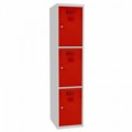 Svařované šatní skříně s boxy v několika barevných variantách, vhodné pro odkládání osobních věcí zaměstnanců na pracovištích, v převlékárnách nebo sportovních klubech. Odlehčená konstrukce z ocelového plechu tloušťky 0,5 mm s výztuhami zajišťuje dobrou stabilitu. Účinné odvádění vlhkosti z oděvů větracími otvory na dveřích. Dvířka boxů jsou zavěšená na vnitřních pantech. Uzamykání každého boxu cylindrickým zámkem, který je možné vyměnit za otočný uzávěr. Možnost umístění štítku se jménem v horní části dveří.Svařované šatní skříně Joe, 3 boxy, cylindrický zámek