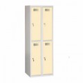 Montované boxové šatní skříně se čtyřmi samostatně uzamykatelnými oddíly. Šatník z ocelového plechu tloušťky 0,6 mm. Účinné odvádění vlhkosti z oděvů větracími otvory na zadní stěně. Dveře jsou uloženy na vnějších otočných pantech. Uzamykání cylindrickým zámkem s možností výměny za otočný uzávěr (nutné dokoupit zvlášť). Možnost umístění štítku se jménem v horní části dveří. Možnost dokoupení lavičky pod šatní skříň.Montované šatní skříně DURO MONT, 4 boxy, cylindrický zámek