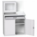 Uzamykatelná dílenská skříň určená pro bezpečné umístění počítačového vybavení v provozních místnostech. Skříň je rozdělena do tří samostatně uzavíraných částí, vrchní díl je opatřen sklopnými uzamykatelnými dvířky s posuvným držákem pro monitor. Součástí je výsuvná police pro klávesnici. Rozměry spodní skříně 750 x 725 x 589 mm. Zásuvky ve standardu E vhodné pro klienty z CZ, SK a PL.Dílenská skříň pro PC, 149,5 x 75,3 x 73,1 cm