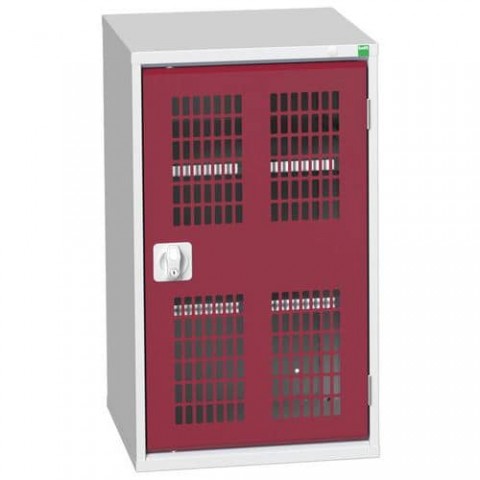 Kovové dílenské skříně s drátěnými dveřmi pro dobrou ventilaci i přehlednost obsahu. Pozinkované police s nosností 75 kg, výškově nastavitelné v rastru 25 mm. Svařovaná ocelová konstrukce, povrchová úprava práškovým lakem. Zamykání tříbodovým cylindrickým rozvorovým zámkem.Dílenské skříňky s jednodvéřovými drátěnými dveřmi Bott Verso, výška 90 cm