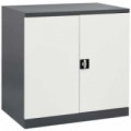 Svařovaná dílenská skříň z ocelového plechu tloušťky 1,2 mm, práškový lak. Police přestavitelné v rastru 24 mm. Uzamykání dvoubodovým cylindrickým rozvorovým zámkem. Dveře se otevírají do úhlu 180°.Kovové dílenské skříně Sofame, šedé/tmavě šedé