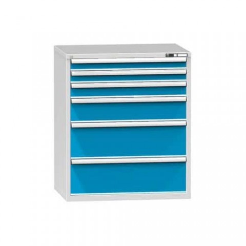 Zásuvkové skříně ZG s výškou 1 215 mm a se šesti zásuvkami. Korpus je vyroben z kvalitních ocelových plechů. Zásuvková skříň je opatřená mechanismem centrálního zamykání a blokace zásuvek. Standardně jsou zásuvkové skříně osazeny cylindrickými zámky, ke každému zámku jsou dodávány dva klíče. K dostání ve 3 barevných variantách.Dílenské zásuvkové skříně ZG, 6 zásuvek, 1215 x 1037 x 753 mm, šedá