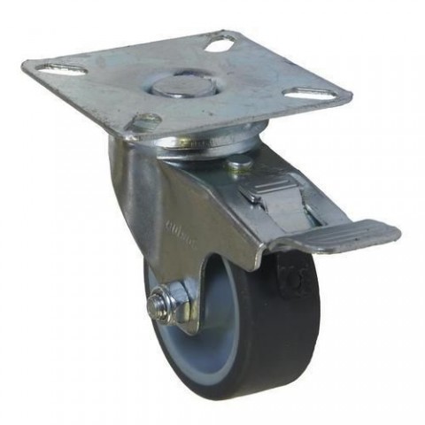 Gumová přístrojová kola s přírubou, průměr 50 - 125 mm, otočná s brzdou, kluzná ložiska