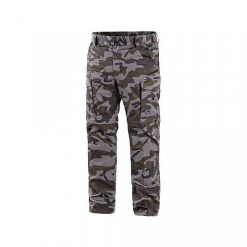 Pánské maskáčové kalhoty s odepínacími nohavicemi a hydrofobní úpravou. Flexibilní pas s poutky na opasek, přední kapsy, zadní kapsy, pravá zadní kapsa s patkou na suchý zip, boční kapsy s klopou, pravá boční kapsa na zip. Použití pro volný čas i práci. Zip odepínacích nohavic je barevně odlišen pro snazší rozeznání pravé/levé nohavice. Velikost: 46-64 Svrchní materiál: 65 % polyester 35 % bavlna OEKO-TEX® STANDARD 100: AnoKalhoty CXS CAMO, pánské, maskáčové, s odepínacími nohavicemi