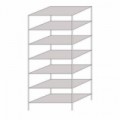 Kancelářské regály na pořadače vhodné do všech kanceláří nebo archivů. Police stavitelné v rastru 25 mm jsou vybaveny zadní dorazovou lištou, která brání šanonu v kontaktu se zdí nebo jeho vypadnutí. Kombinací základních a přístavbových regálů je možné vytvořit sestavy podle potřeb interiéru. Jednoduchá montáž bez použití spojovacího materiálu a nářadí. Povrchová úprava práškovým lakem nebo pozinkováním. Celková šířka základního regálu +6 mm.Bezšroubové kovové regály Hathor