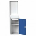 Svařovaná ocelová skříňka s šikmým pracovním pultem. Výškově nastavitelná police. Z??suvka. Centrální zamykání, takže vaše věci jsou v bezpečí.Skříňka se šikmým psacím pultem Bott, 113 x 105 x 55 cm