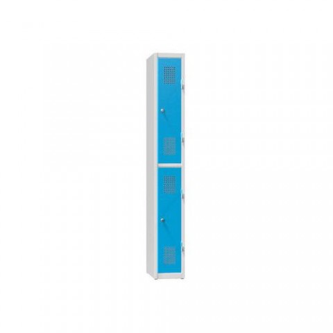 Půlené šatní skříně jsou dostupné ve výšce 1850 mm, šatníky jsou standardně vybaveny cylindrickým zámkem, dvěma klíči a třemi plastovými háčky. Plechové šatní skříně pro úsporu místa. Police ve spodní části skříňky. Cylindrický zámek se dvěma klíči.Kovové šatní skříně 2-box na soklu, půlené, 250 x 500 x 1850 mm