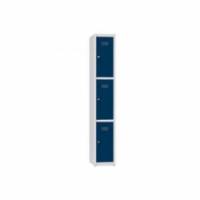 Plechové šatní skříně pro uložení drobných osobních věcí. Dveře jednotlivých boxů jsou uloženy na vnitřních pantech s úhlem otevření více než 90°. Šatníky jsou standardně vybaveny cylindrickým zámkem pro každou buňku (možnost zámku s cylindrickou vložkou nebo uzávěru pro visací zámky). Součástí jsou 3 plastové háčky pro zavěšení uschovaných věcí. Větrací otvory ve dvířkách. K dostání ve třech barevných variantách.Kovové šatní skříně, 3 boxy, 1850 x 300 x 500 mm, šedá
