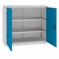 Kovové svařované skříně s vanovými policemi vhodné pro skladování kapalin. Monolitická svařovaná konstrukce z oceli tl. 1 mm zajišťuje vysokou pevnost. Vhodné pro profesionální použití ve vnitřních suchých a větraných prostorách. 2 retenční pozinkované police s nosností 60 kg. Křídlové dveře s tříbodovým zámkem RONIS (dodáváno se 2 klíči). Vyrovnávací nožky, které jsou nastavitelné zevnitř. Posuvníky pro snadný pohyb skříně a ochranu podlahy. Pro vysokou bezpečnost lze přikotvit ke zdi. Před lakováním jsou skříně potaženy zirkoniovou vrstvou, která je chrání před korozí a zvyšuje přilnavost laku. Skříně jsou opatřené nátěrem, který má klasifikaci reakce na oheň: A2-s1, d0 dle norem PN-EN 13501-1:2019-02. Vyráběno v souladu s normami ISO:9001 a ISO:14001.Kovové skříně s vanovými policemi, 104 x 120 x 50 cm