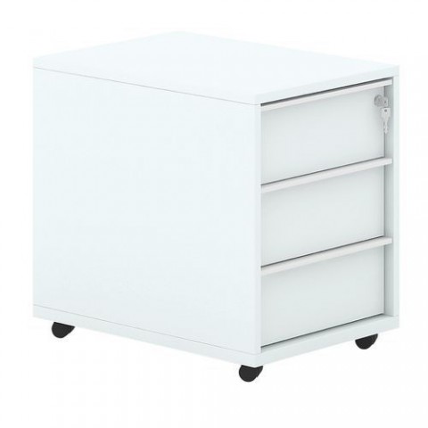 Mobilní kontejner Misao z melaminu s 1 mm hranami. Spodní zásuvka na závěsné pořadače. Výška zásuvky 8,6 cm a šířka 50 cm. Zásuvka na závěsné pořadače vhodná na pořadače A4 a foolscap. Centrální zamykání bez ochrany proti převrácení.Mobilní kontejnery Misano, Manutan Expert, 3 zásuvky