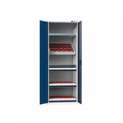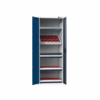 NC skříně jsou opatřeny dvojitými stěnami s perforací pro zavěšení polic, nosičů, nástrojových rámů a zásuvek. V případě vybavení skříne zásuvkami je standardně, z důvodu bezpečnosti (nebezpečí převrácení), dodávána blokace proti vysunutí více zásuvek. Korpus skříně se uzavírá křídlovými dveřmi s panty otočnými o 180°. Zamykání cylindrickým rozvorovým zámkem. Standardní výbavou je systém identifikace otvorů a popisový štítek s funkcí chytrý nábytek. Do skříní je možné zavěšovat zásuvky s půdorysem ZD (36x27).NC skříně s křídlovými dveřmi 36x27D s vybavením, var. 8