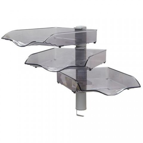Odkládací věž s volitelným počtem až pěti otočných přihrádek. Prohlubeň v přední části polic umožňuje snadné vyjímání odložených dokumentů. pro dokumenty do formátu A4 volitelný počet přihrádek: 1 - 5 otáčivost přihrádek o 360° nosnost 1 přihrádky: 3 kg materiál: plast barva: transparentní výška první police nad stolem: 150 mmOdkládací přihrádkové věže