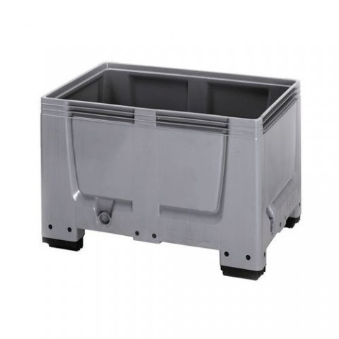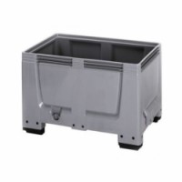 Plastové paletové kontejnery se čtyřmi nohami a pevnou konstrukcí jsou odolné vůči chemikáliím, plísním a korozi a jsou snadno omyvatelné. Vyšší bezpečnost při obsluze zajišťují zaoblené hrany a okraje. Hladká dna kontejnerů jsou vybavena odvodňovacími kanálky.Paletové kontejnery, 525 - 610 l, 4 nohy