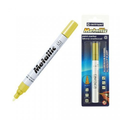 Univerzální lakový značkovač na porézní a neporézní povrchy pro náročné. Stopa písma s vynikající krycí schopností je permanentní, světlostálá, odolná otěru, vodě i při bodu varu. Stopa není smývatelná lihem. Hliníkový plášť s přepouštěcím mechanismem. Před použitím dobře protřepejte a několikrát zatlačte hrot, dokud se nenasytí barvou. Začne-li stopa písma slábnout, proveďte dosycení krátkým zatlačením hrotu.Popisovače CENTROPEN 9210 LACKMARKER