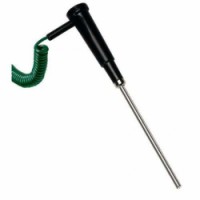 Teplotní sonda s termočlánkem typu K. Umožňuje snímat hodnoty ze zaoblených povrchů pomocí kabelu a rukojeti.Povrchová termočlánková sonda typu K HI-766B2
