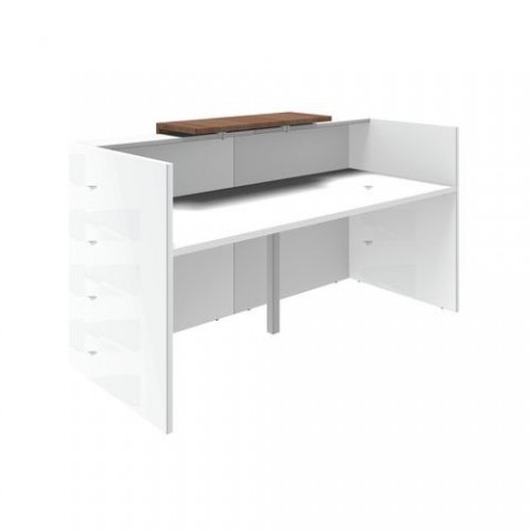 Moderní recepce Luxo v bílé barvě. Desky mají antireflexní povrch odolný proti poškrábání a 2 mm ABS hranu. Vybaveno rektifikačními nožkami pro eliminaci podlahových nerovností. barva: bílá/ořech rozměry pracovní desky d x h: 206 x 88 cm výška pracovní desky: 113 cm provedení: rovné materiál: laminovaná dřevotříska 2 mm ABS hrana, desky tloušťky 25 mm, dodáváno v demontovaném stavuRecepce Luxo rovná, 206 cm