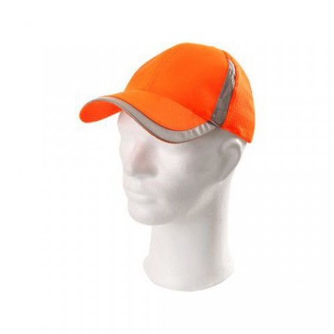 Čepice s kšiltem a s reflexními proužky, šestipanelová, zapínání na suchý zip, zadní díl ze síťoviny.Reflexní kšiltovka ELY, oranžová