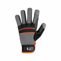 Kombinované rukavice se silikonovými aplikacemi v dlani a prstech pro lepší úchop a manipulaci. Dlaň je vyrobena ze syntetické kůže (mikrovlákna), díky které jsou rukavice pohodlné a odolné vůči srážení, natahování a tvrdnutí. Hřbet z prodyšného Spandexu, v oblasti kloubů je neopren. Oblast mezi palcem a ukazováčkem vyztužena PVC. Neoprenová manžeta se suchým zipem se snadno přizpůsobí zápěstí. Baleny s blistrem. Doporučené použití: logistika, lehký průmysl, hobby, řidiči. Velikost: 09-10 Normy: EN ISO 21420, EN 388 Svrchní materiál: Materiál dlaně: mikrovlákno: nylon s PU, Materiál hřbetu: Spandex, neopren Prostředí: SuchéRukavice CXS CARAZ, kombinované, šedo-černé