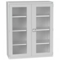 Prosklená skříňka je vhodná jak do kanceláří, tak do laboratoří, dílenských pracovišť i zdravotních zařízení. Skříňka s konstrukcí z ocelového plechu je vybavena policí, jejíž výška lze podle potřeby nastavit v rastru. Dveře jsou uzamykatelné cylindrickým zámkem. Skleněná část je z tvrzeného skla o tloušťce 4 mm s povrchovou úpravou.Kovová dílenská skříň, 80 x 95 x 40 cm