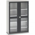 Kovové dílenské skříně s průhlednými plexi dveřmi pro snadnou kontrolu obsahu. Pozinkované police s nosností 75 kg, výškově nastavitelné v rastru 25 mm. Svařovaná ocelová konstrukce, povrchová úprava práškovým lakem. Uzamykání tříbodovým cylindrickým rozvorovým zámkem se dvěma klíči.Dílenské skříně s průhlednými dveřmi Bott Verso, výška 200 cm