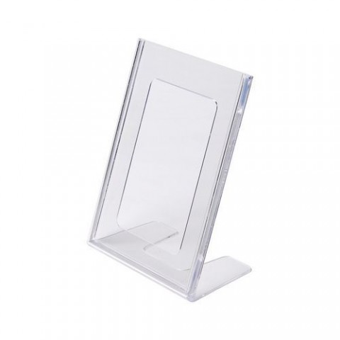 Pultové prezentační stojánky tvaru L z plastu. Vhodné jako stojánek na menu do restaurací. Orientované na výšku. Jednostranný pohled.Stojánky na letáky JD3, typ L na výšku