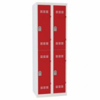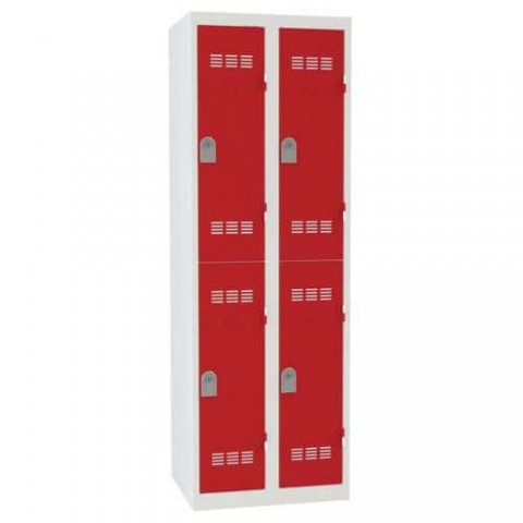 Více-oddílová šatní skříň svařovaná z ocelového plechu tloušťky 0,7 mm. Každý oddíl je vybaven tyčí na ramínka a dvěma háčky (uzamykání cylindrickým zámkem se dvěma klíči). Perforovaná dvířka zajišťují účinné odvětrávání vnitřního prostoru. Možnost umístění štítku se jménem.Svařované šatní skříně Vinco, 2 sloupce, 4 boxy, 300 mm, cylindrický zámek