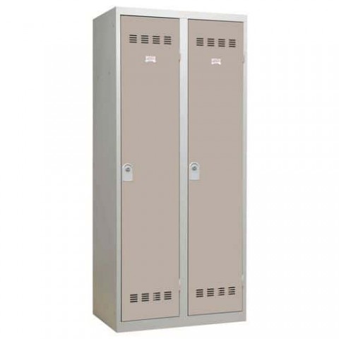 Šatní skříň svařovaná z ocelového plechu tloušťky 0,7 mm. Každý oddíl je vertikálně rozdělen mezistěnou umožňující odložení čistých a špinavých oděvů. Každý oddíl je vybaven tyčí na ramínka a dvěma háčky. Uzamykání jednobodovým cylindrickým zámkem se dvěma klíči. Perforovaná dvířka zajišťují účinné odvětrávání vnitřního prostoru, možnost umístění štítku se jménem.Svařované šatní skříně Vinco s mezistěnou, 2 oddíly, 400 mm, cylindrický zámek
