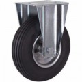 Pevná pneumatická kola na ocelovém ráfku s válečkovým ložiskem. Drážkovaný profil. Nízká hlučnosti, dobrý jízdní komfort.Nafukovací pojezdová kola s přírubou, průměr 150 - 230 mm, válečkové ložisko, pevná