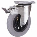Otočná pojezdová kola z šedé termoplastické pryže na plastovém ráfku s přesnými kuličkovými ložisky. Šedý nešpinivý běhoun. Nízká hlučnost, nízký válivý odpor. Vysoká odolnost vůči chemikáliím (oleje, plyny, kyseliny, rozpouštědla a organické látky). Odolnost vůči teplotám od -20 do +80 °C, vysoká odolnost vůči opotřebení. Tvrdost 65° Shore A.Termoplastická pojezdová kola s přírubou, průměr 125 - 200 mm, kuličkové ložisko, otočná