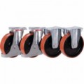 Sada dvou pevných a dvou otočných kol na polyamidovém ráfku s válečkovými ložisky. Tvrdost 96° Shore A.Sada 2 pevných a 2 otočných kol, polyuretanová, 200 x 50 mm, 96° Shore A