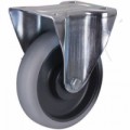 Pojezdová kola z šedé termoplastické pryže na plastovém ráfku s přesnými kuličkovými ložisky. Šedý nešpinivý běhoun. Nízká hlučnost, nízký válivý odpor. Vysoká odolnost vůči chemikáliím (oleje, plyny, kyseliny, rozpouštědla a organické látky). Odolnost vůči teplotám od -20 do +80 °C, vysoká odolnost vůči opotřebení. Tvrdost 65° Shore A.Termoplastická pojezdová kola s přírubou, průměr 125 - 200 mm, kuličkové ložisko, pevná
