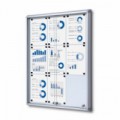 Osvětlená magnetická vitrína se stříbrným hliníkovým rámem vhodná do exteriéru. Vitríny pro 12 - 27 x A4 jsou vybaveny písty pro snadnější otevírání. 12 V LED podsvícení z horní části vitríny. Teplota chromatičnosti je 6 - 7 000 K. Zadní plechová stěna je popisovatelná. Tvrzené ESG sklo o šířce 4 mm. Stupeň krytí IP56.Osvětlené magnetické vitríny Teo, jednokřídlé
