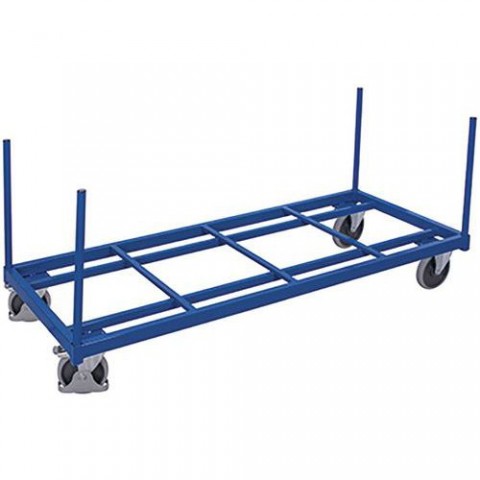 Ocelový vozík pro těžké náklady s odnímatelnými sloupky 625 mm. Pojízdnost zajišťují dvě pevná kola a dvě otočná kola s brzdou. Šedá kola z termoplastické pryže nezanechávající stopy na plastovém ráfku s přesnými kuličkovými ložisky nebo elastická celopryžová kola na litém hliníkovém ráfku s přesnými kuličkovými ložisky.Vozíky pro těžké náklady se sloupky