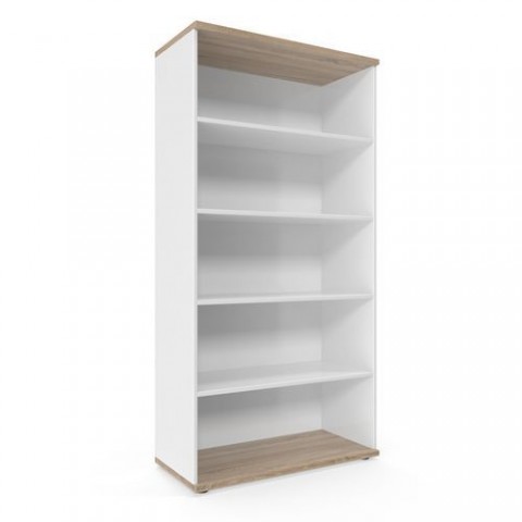 Vysoké skříně pro skladování dokumentů, šanonů apod. Horní a spodní desky jsou vyrobené z laminované dřevotřísky tl. 25 mm. Zadní a boční stěny jsou vyrobené z dřevotřísky tl. 18 mm. Zadní a boční stěny včetně polic v neutrálním bílém nebo šedém provedení. Opatřené plastovými nožkami, které jsou výškově nastavitelné. Dezén v provedení buk/šedá, dub sonoma/bílá nebo dub oyster/bílá.Vysoké skříně Viva, 179 x 90 x 42 cm, otevřené