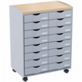 Pojízdné zásuvkové skříně se 16 zásuvkami. Horní deska s nárazuvzdornou ABS hranou. Vybaveny 4 otočnými kolečky. Nosnost až 3 kg na zásuvku.Mobilní zásuvkové skříně Paperflow, 16 zásuvek