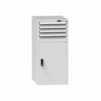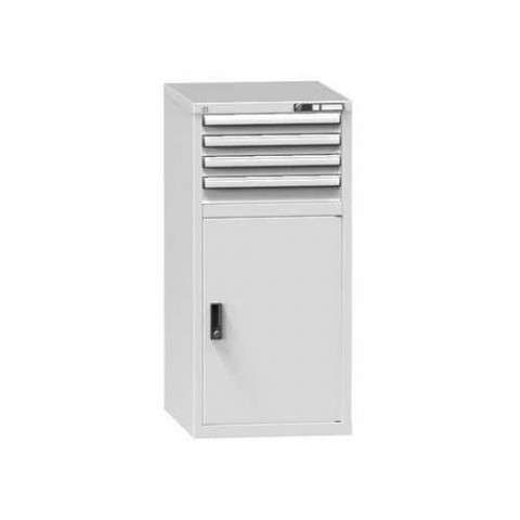 Zásuvková skříň je opatřená mechanismem centrálního zamykání a blokace zásuvek. Zásuvky jsou základním skladovacím prvkem, a proto splňují vysoké požadavky na pevnost a stabilitu. Korpusy zásuvkových skříní tvoří svařenec jednotlivých konstrukčních dílů z kvalitních ocelových plechů. Vnitřní konstrukce korpusů je opatřena perforací po 25 mm. Tuto perforaci využíváme k uchycení vodicích lišt zásuvek, jejich výškovému uspořádání a nakonfigurování požadované zásuvkové sestavy. Přestavování vodicích lišt nebo háčků polic probíhá jednoduše a velice rychle bez použití nástrojů.Zásuvkové skříně ZE1, 578 x 753 x 1215 mm