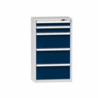 Zásuvková skříň je opatřená mechanismem centrálního zamykání a blokace zásuvek. Zásuvky jsou základním skladovacím prvkem, a proto splňují vysoké požadavky na pevnost a stabilitu. Korpusy zásuvkových skříní tvoří svařenec jednotlivých konstrukčních dílů z kvalitních ocelových plechů. Vnitřní konstrukce korpusů je opatřena perforací po 25 mm. Tuto perforaci využíváme k uchycení vodicích lišt zásuvek, jejich výškovému uspořádání a nakonfigurování požadované zásuvkové sestavy. Přestavování vodicích lišt nebo háčků polic probíhá jednoduše a velice rychle bez použití nástrojů.Zásuvkové skříně ZP3, 731 x 464 x 1215 mm