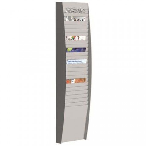 Polystyrenový rám a přihrádky. Formát A4. V závislosti na modelu prezentujte dokumenty horizontálně nebo vertikálně. Držáky lze snadno spojovat. Dodává se ve smontovaném stavu.Závěsné držáky na prospekty Paperflow, šedé